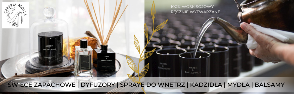 Cereria Molla to hiszpańska, rodzinna marka z ponad 120-letnią tradycją. Początek działalności to rok 1899 i do dziś firma jest prowadzona z pasją przez członków rodziny założycieli. Cereria Molla to przede wszystkim ręcznie wytwarzane świece z naturalnego wosku sojowego, które spalając się nie wytwarzają - szkodliwych substancji jak to ma miejsce w przypadku świec parafinowych. Zastosowany jest naturalny bawełniany knot oraz wysokiej jakości opakowania szklane i papierowe nadające się do recyklingu. Z czasem oferta marki została wzbogacona w piękne dyfuzory zapachowe, kadzidła, spraye do wnętrz, tekstyliów a także ciała, mydła oraz balsamy! Zapraszamy Cię do świata pachnącego miłością i luksusem!